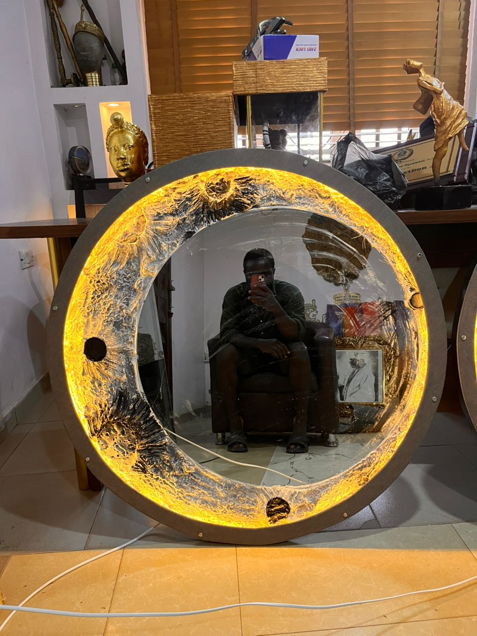 This moon mirror is so pretty. It’s like art and a mirror in one, and it makes my sitting room look so beautiful😍