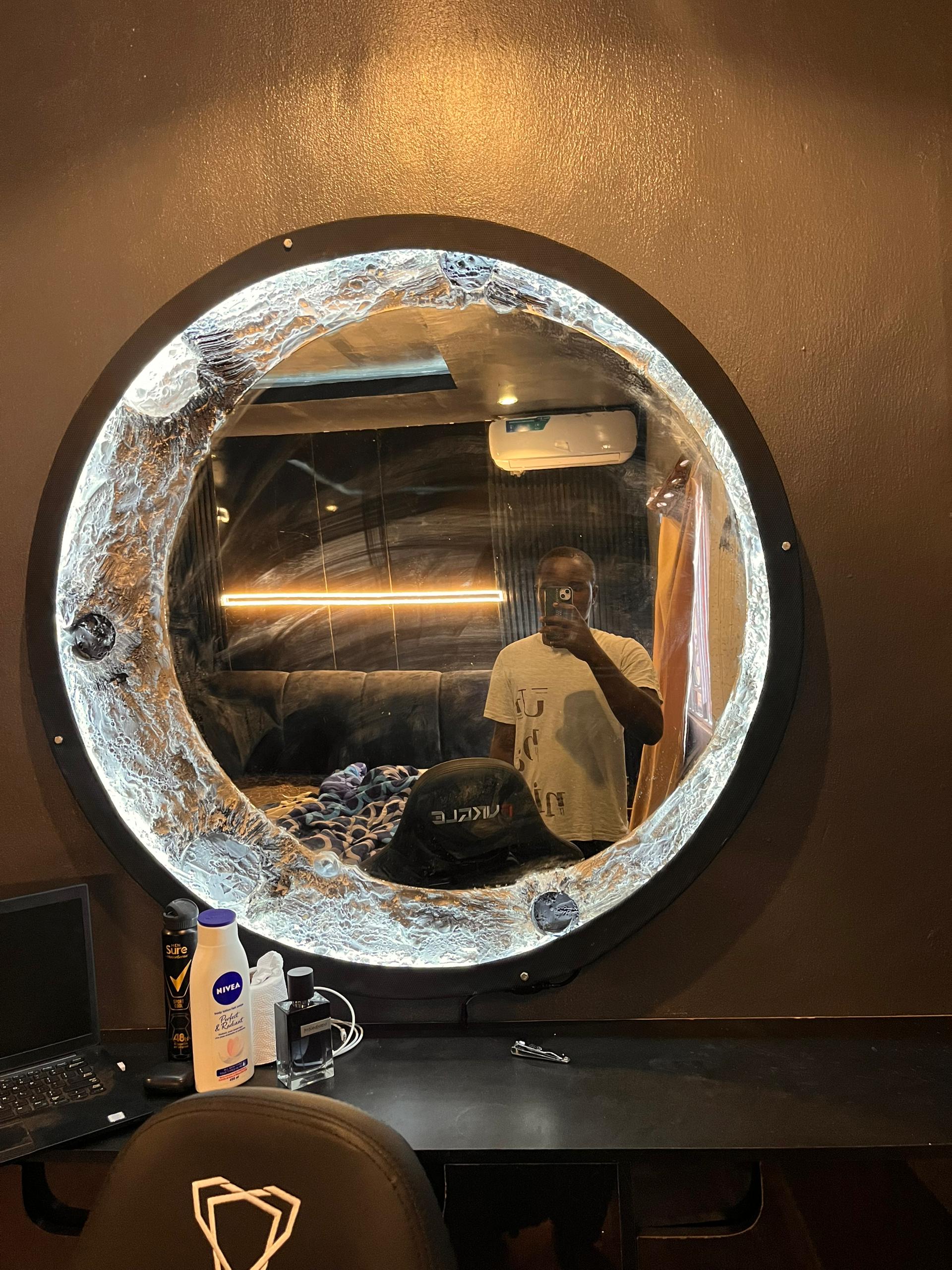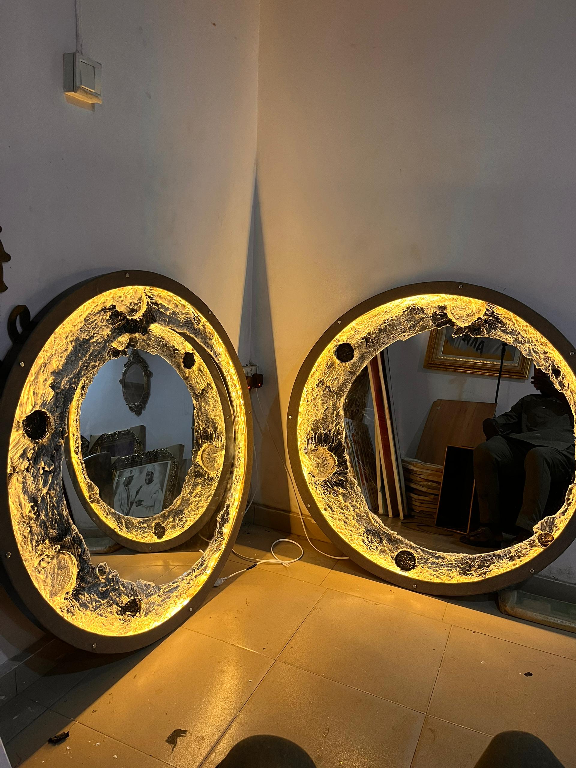 Illuminating moon art mirror