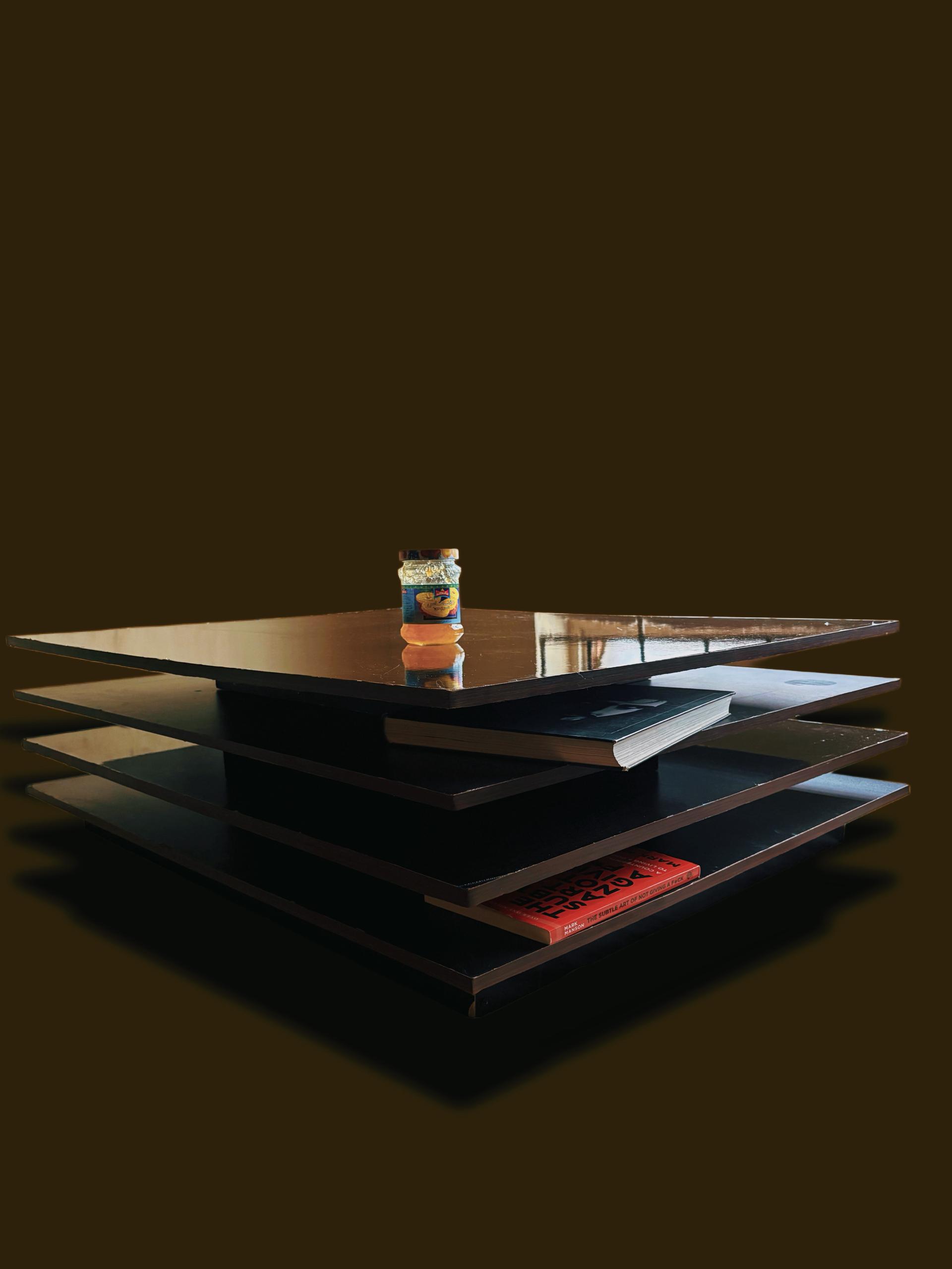 It’s not just a table but a statement of form and function. Designed with precision, with layered slabs that transform into a sleek bookshelf, blurring the line between furniture and Art. Minimal and Definitive.