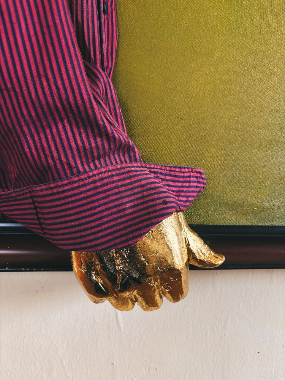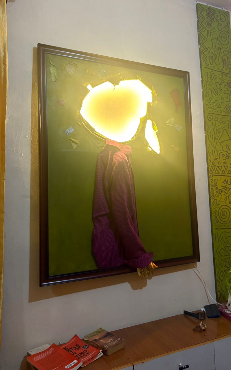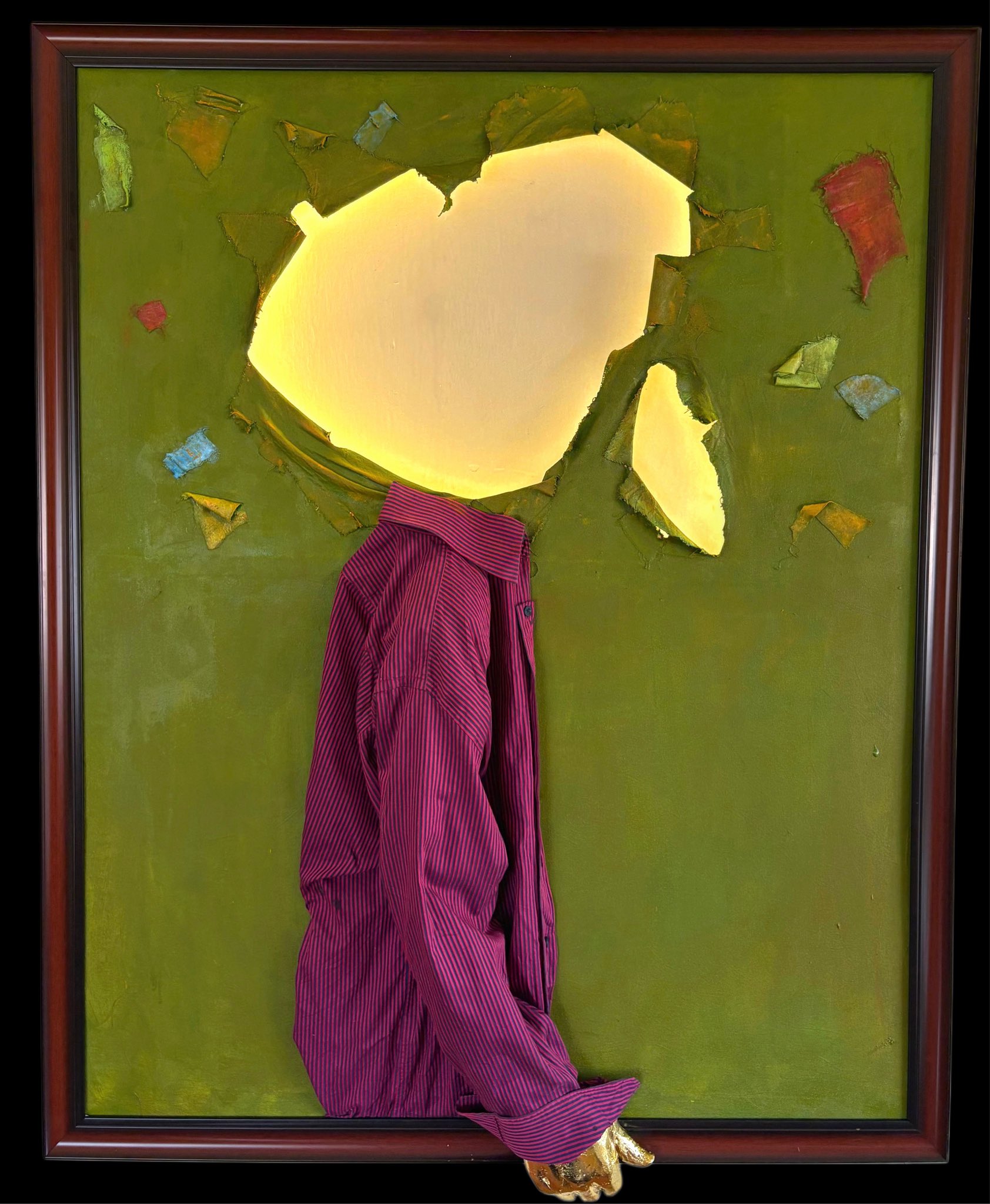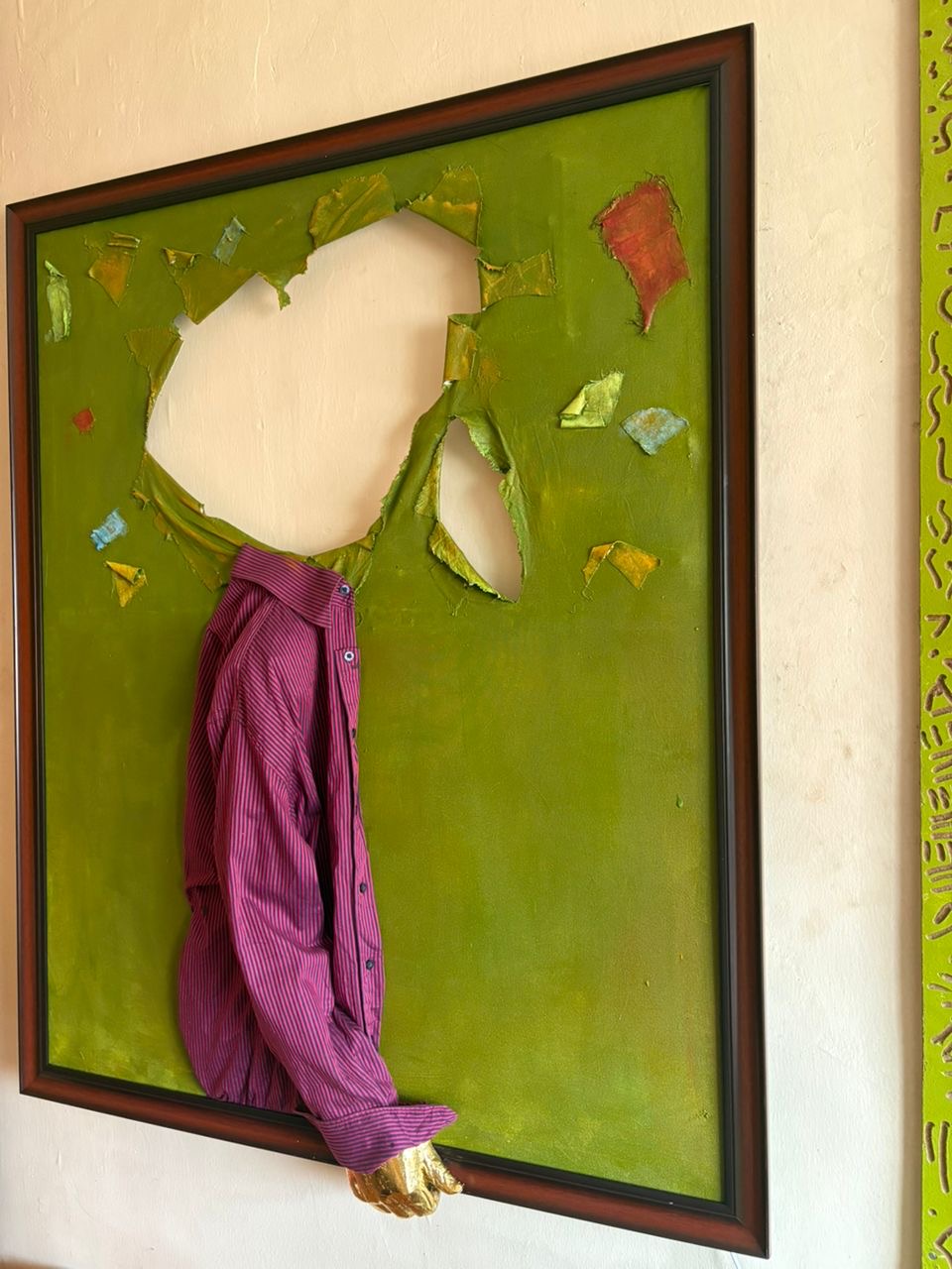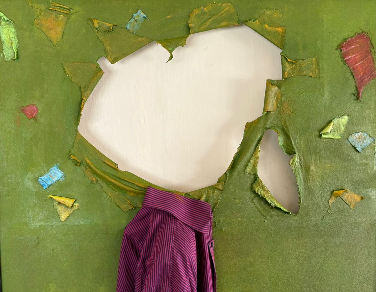 Draped in the regular shirt worn not for comfort, but as a uniform for survival.